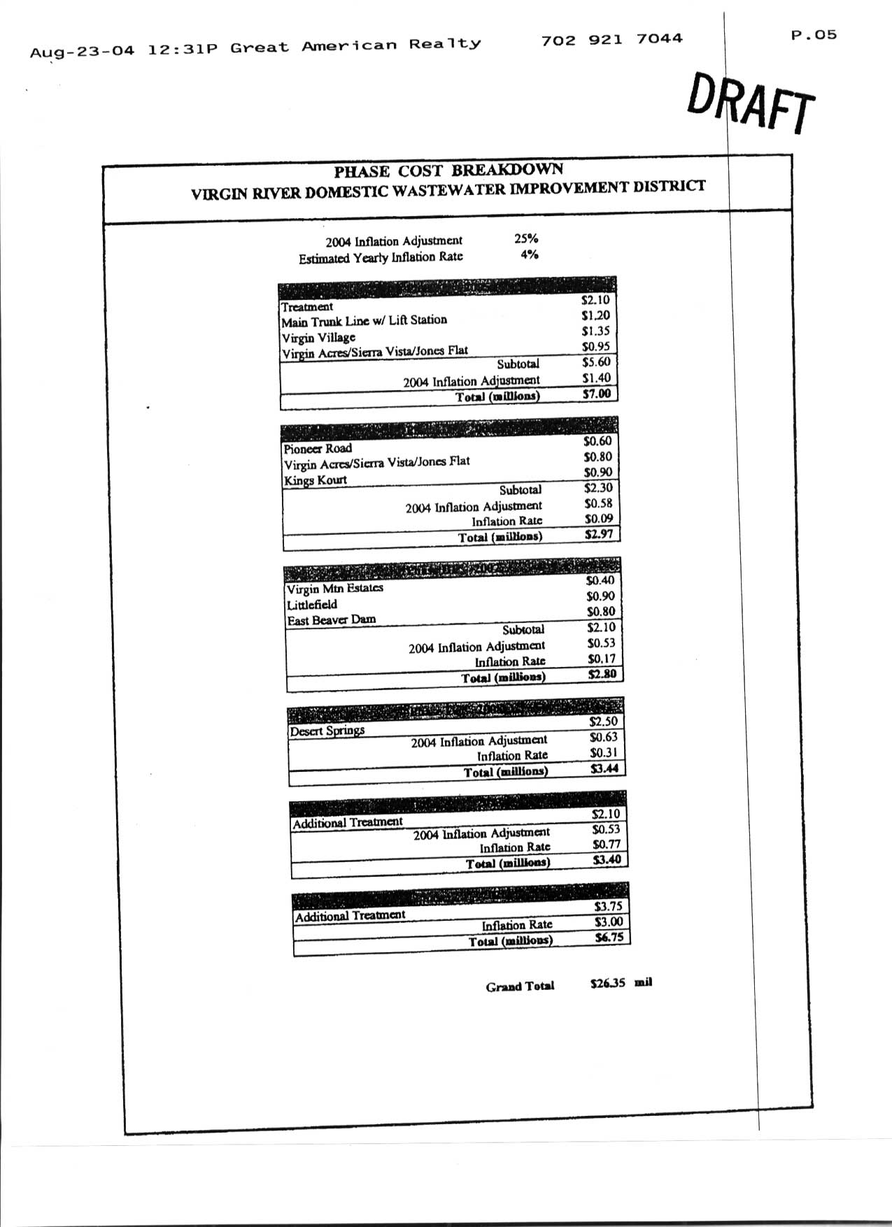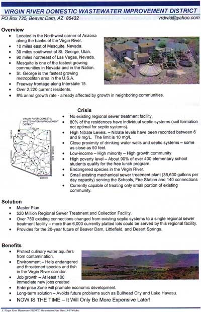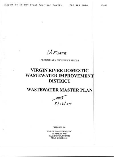 Preliminary engineer's report Virgin River Domestic Wastewater Improvement District-Wastewater Master Plan (excerpt from updated report of 8/16/04)