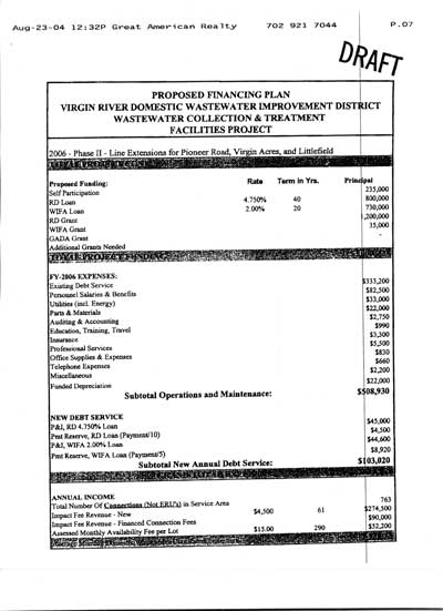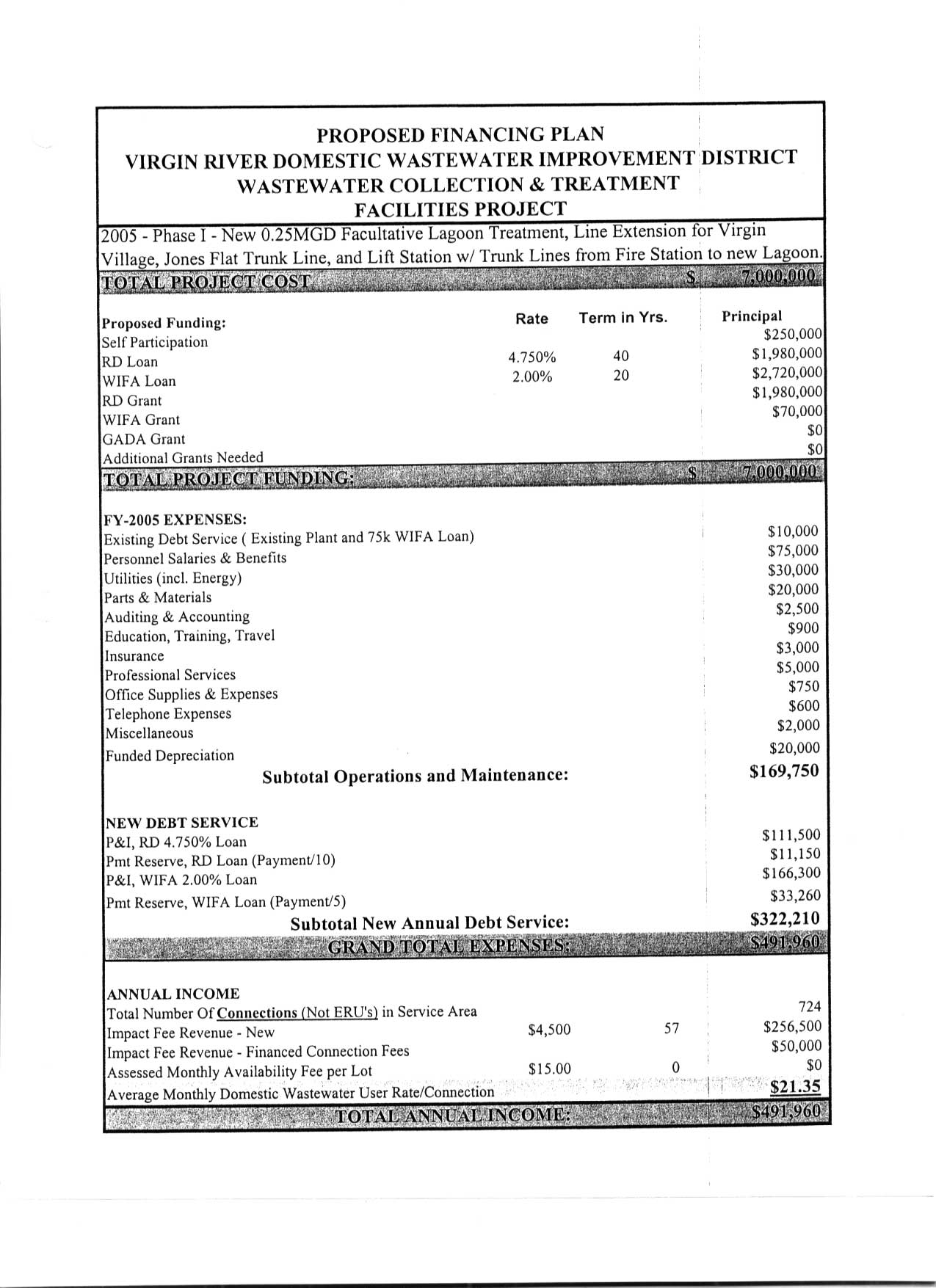 Proposed Financing Plan - Virgin River Domestic Wastewater Improvement District